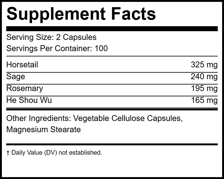 Core Harmony’s Hair Growth & Repair Supplement is formulated to stimulate the scalp and increase blood flow to the hair follicles. It contains four powerful herbs known for their ability to help regrow dormant hairs and promote the growth of new hair.