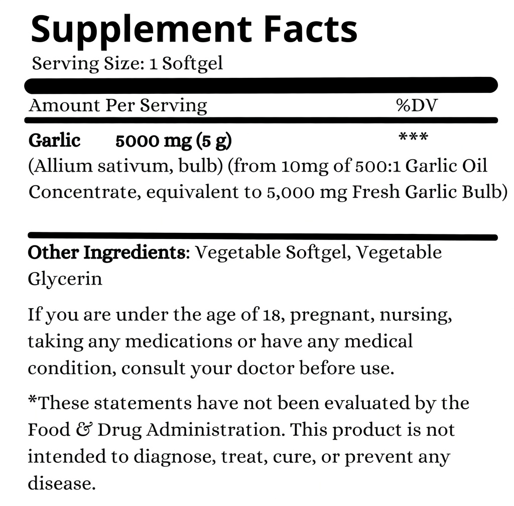 Daily use of garlic supplements has been shown to provide significant additional health benefits. These benefits come from more than 100 sulfur compounds, including the most well-known one: allicin. Unlike many other garlic supplements, Core Harmony’s Natural Garlic Oil Softgels are standardized to deliver the equivalent of at least 5,000 mg of fresh garlic per softgel.